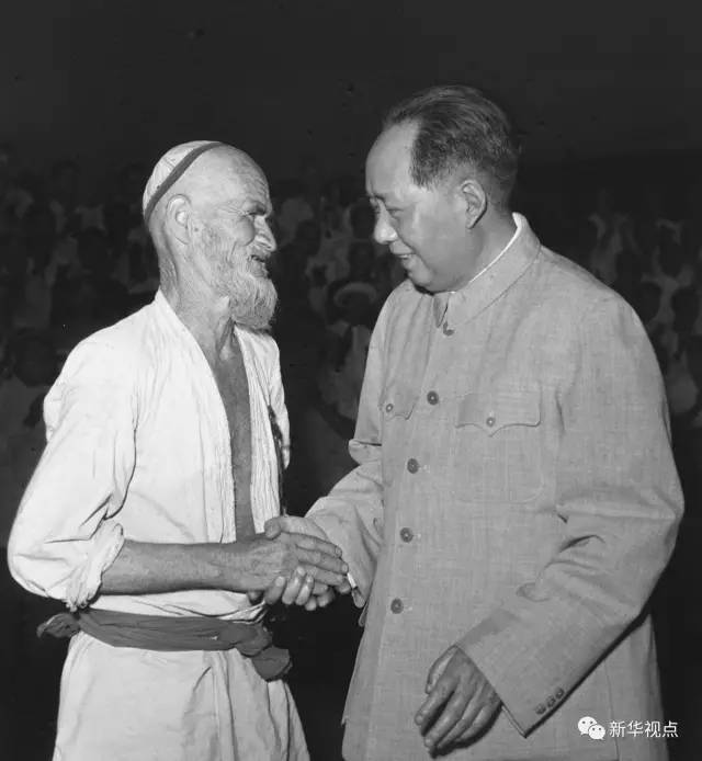 这张老照片,记录了1958年6月28日毛泽东主席与库尔班·吐鲁木亲切握手的场景。